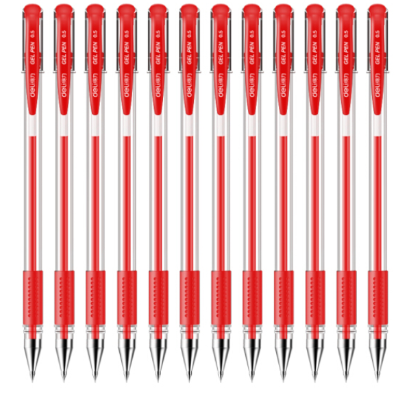 得力6600中性笔、水笔0.5mm顺滑直液中性笔 0.2mm红色24支